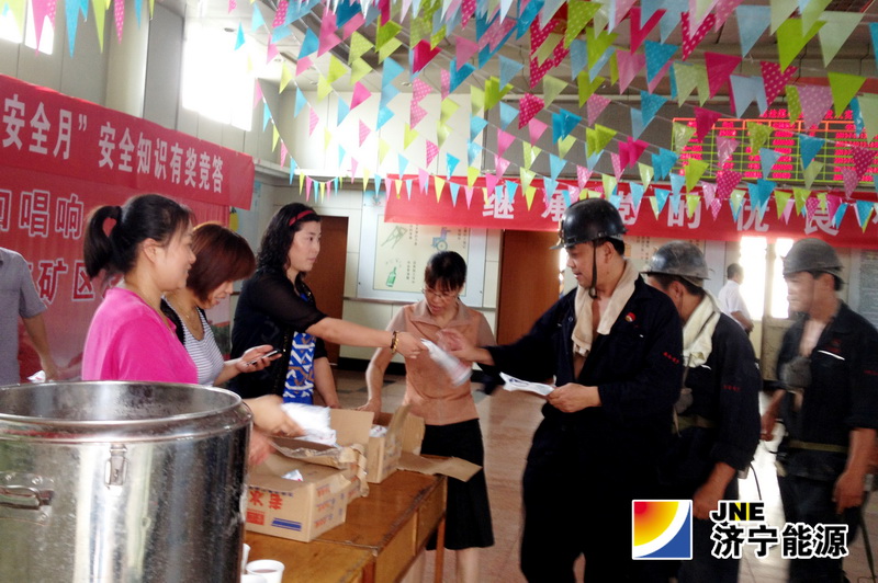 女工协管会从6月初每天坚持为职工送绿豆茶,7月初坚持每天下午100定时到井口送雪糕,给职工送去清凉和祝福,确保了雨季高温天气条件下的安全生产。图为女工协管员为下井职工发放雪糕。(鹿洼煤矿 张秀丽)