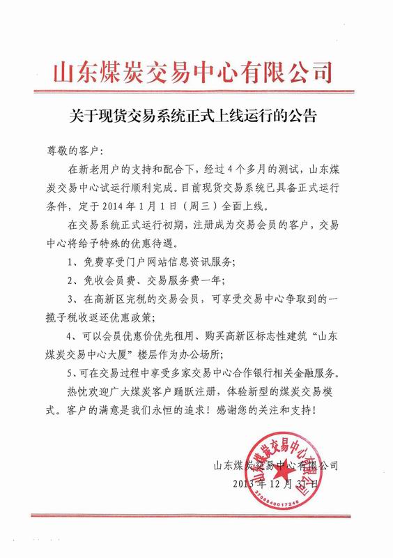 煤炭交易中心正式上线的公告