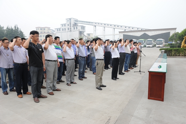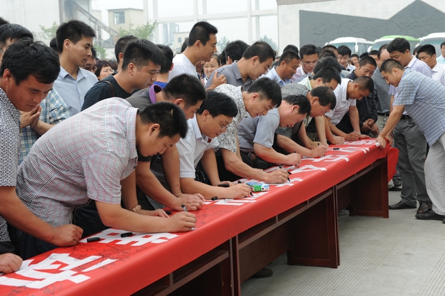 随后,在采掘办公楼前, 副总工程师以上领导、机关科室人员及生产区队干部职工代表400余人,在矿长张运宪的带领下进行安全宣誓,参加人员举起右手,握紧拳头,一字一句跟随张矿长庄严宣誓,确保安全生产。参会人员在写有“强化安全基础,推动安全发展”的条幅上签上自己的名字,保证安全生产。接着,一同观看了“反三违打三非”安全教育警示挂图展览。