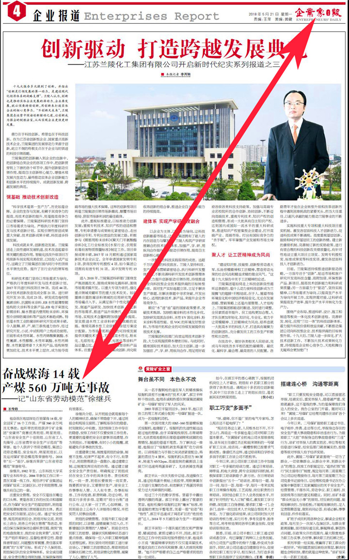 《奋战煤海14载 产煤560万吨无事故——记“山东省劳动模范”徐继兵》